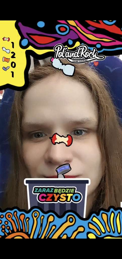 Another major change was an apparent increase in ecological awareness related to the problems music festivals often cause in this regard. The action “It’s getting clean” (Zaraz będzie czysto, a variation on the festival’s password of “It’s getting dark”), even though first organised in 2018, was particularly visible this year. Not only does it encourage people to chip in on a crowdfunding action to cover the costs of cleaning the campsite, it is also targeted at simply asking people to clean up after themselves, once again showing the organisation’s reliance on people’s individual responsibility. This visibility is well illustrated by the Instagram filters – besides the yearly variation of the festival’s theme, there was also a mini-game where people could “catch” falling junk.